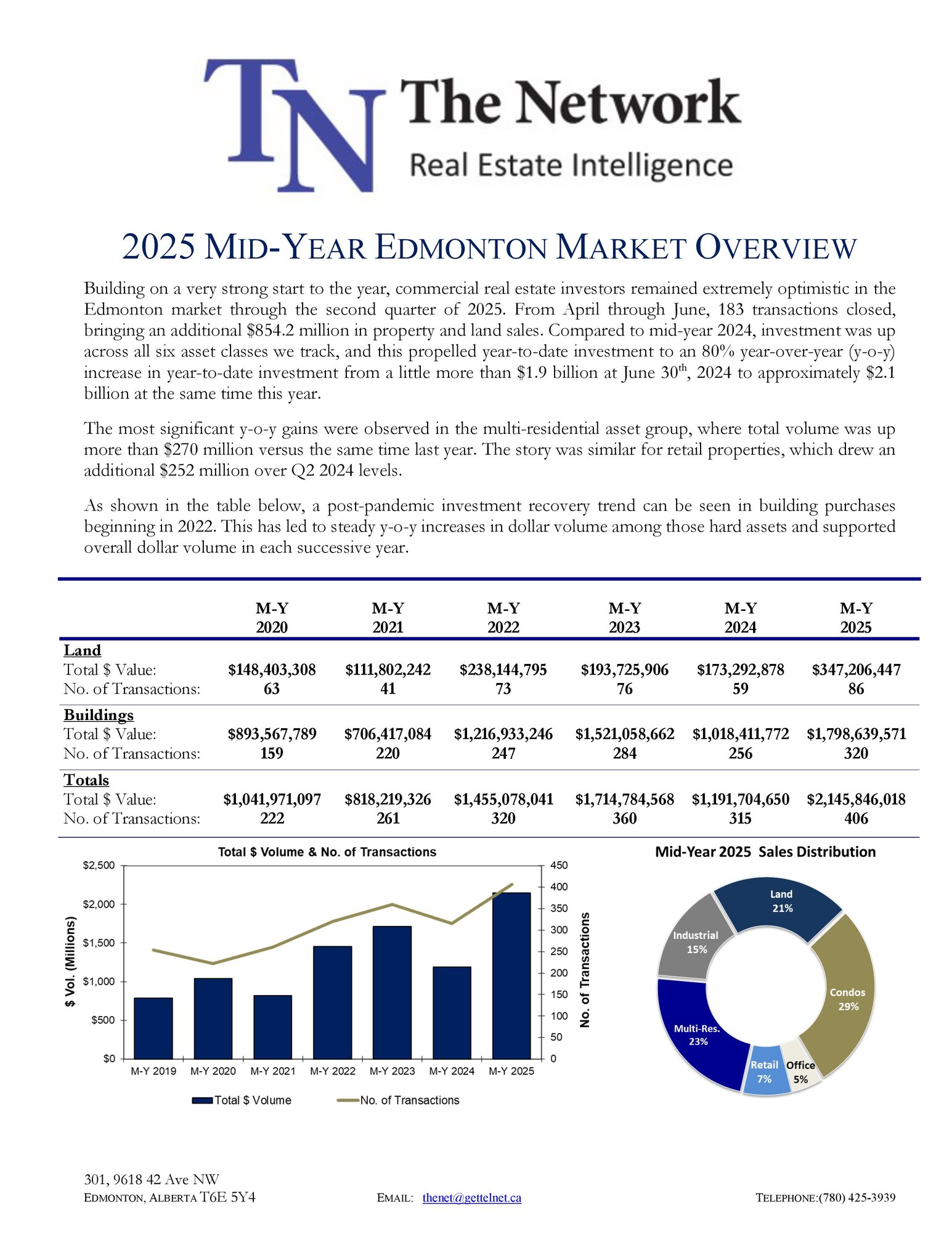 Building on a very strong start to the year, commercial real estate investors remained extremely optimistic in the Edmonton market through the second quarter of 2025.